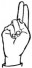 На ћирилици написано ЕВГЕНИЈЕ ГЕОРГИЈЕВ састоји се из 17 слова [?]. Исписано ћириличном једноручном азбуком за глувонеме: